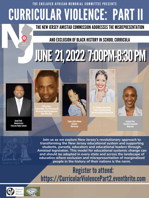 The Enslaved African Memorial Committee (EAMC) was established in 2015 by a group of concerned and dedicated Teaneck residents. The goal of the committee is to commemorate the history of the Africans that were victims of the transatlantic slave trade and who were forcibly and brutally brought to the Americas yet made significant contributions to American history, particularly Bergen County and the Township of Teaneck. This memorial will be erected on the Municipal Green in Teaneck. It’s a story and viewpoint many people don't know...yet. Let’s make history!